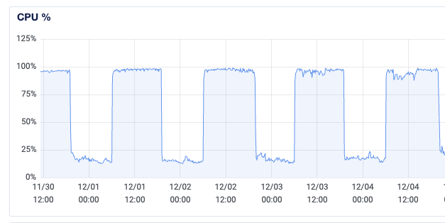 The resource CPU development server beetween 06.00 - 18.00 always 100%